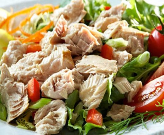 Слоеный салат с курицей и орехами